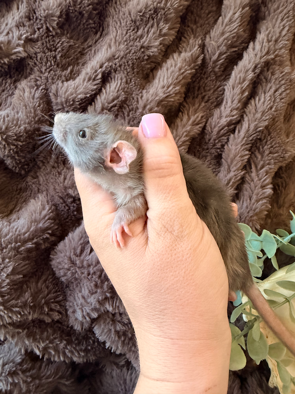 Welcome to our Adoptable Rats page! Here you’ll find a list of our current babies and young rats available for adoption—each one raised with love, socialized from a young age, and ready to bring joy to their new home. We take pride in offering temperament-first companions with a variety of coat types, colors, and ear styles. If you aren't from our local area we do work with transportation services that can help you get your desired pet home.